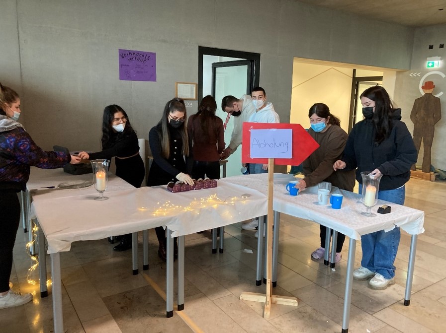 An zwei Freitagen hatten Schüler und Lehrer in den Pausen die Möglichkeit, Punsch und Lebkuchen an der Mittelschule Wasserburg zu kaufen. Die SMV hatte die Idee einen solchen Stand zu organisieren und somit Geld für die Schule zu sammeln. Frau Tica und Herr Waldecker erledigten zusammen mit einigen Schülern die Einkäufe und Organisation für den Verkauf. Das Design und den Aufbau für den Stand haben sich die Schüler der 10bM ausgedacht.