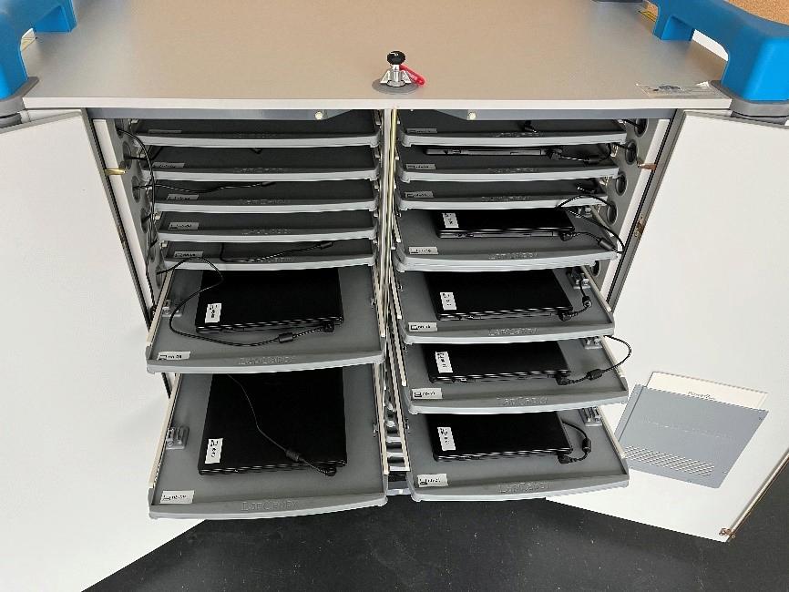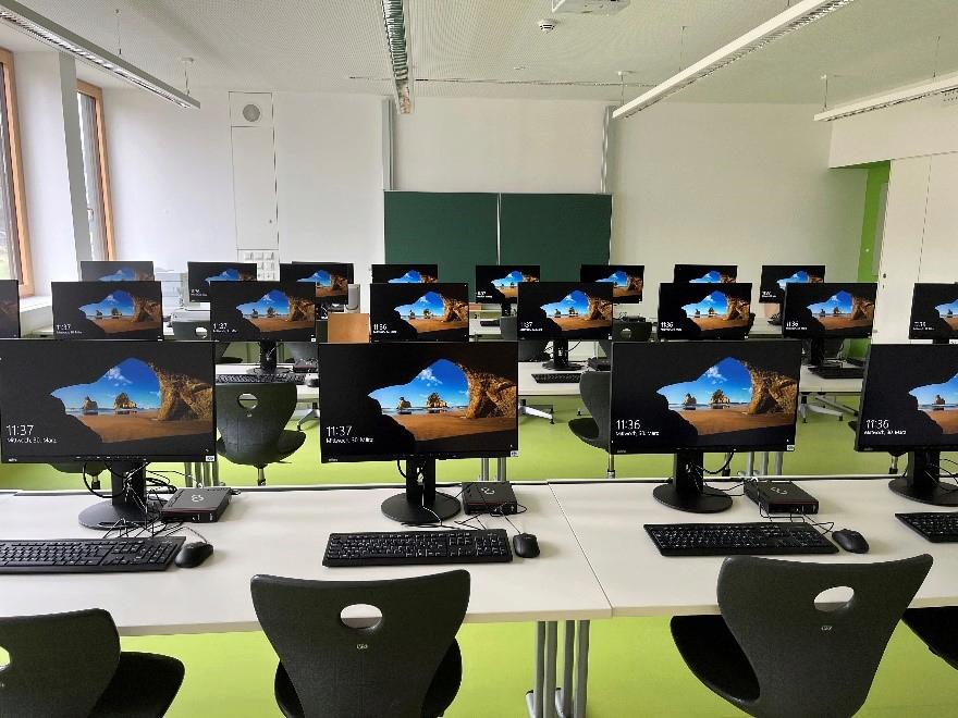 Auch in einem Gruppenraum konnten fünf neue Arbeitsplätze für unsere Schülerinnen und Schüler errichtet werden. Ebenso wurde der Laptopwagen mit 24 Notebooks auf das neue System upgedatet und bieten uns weitere Einsatzmöglichkeiten.