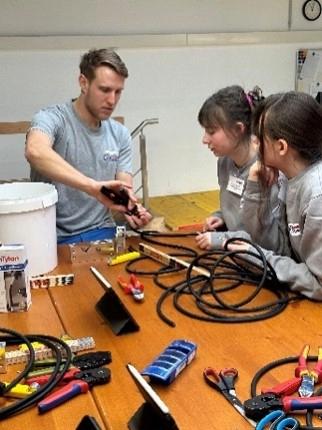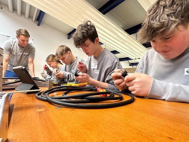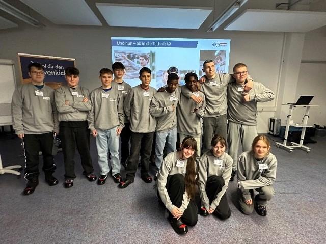 Am Donnerstag, 01.02.2024 besuchte die Technikgruppe der 9. Jahrgangsstufe die Werkstätten der Elektriker und Industriemechaniker der Privatmolkerei Bauer. Nach einer kurzen Präsentation der Firma von Bewerbermanagerin Frau Simmeth ging es, ausgerüstet mit einem Bauer-Sweatshirt und Sicherheitsschuhen, an die Arbeit.