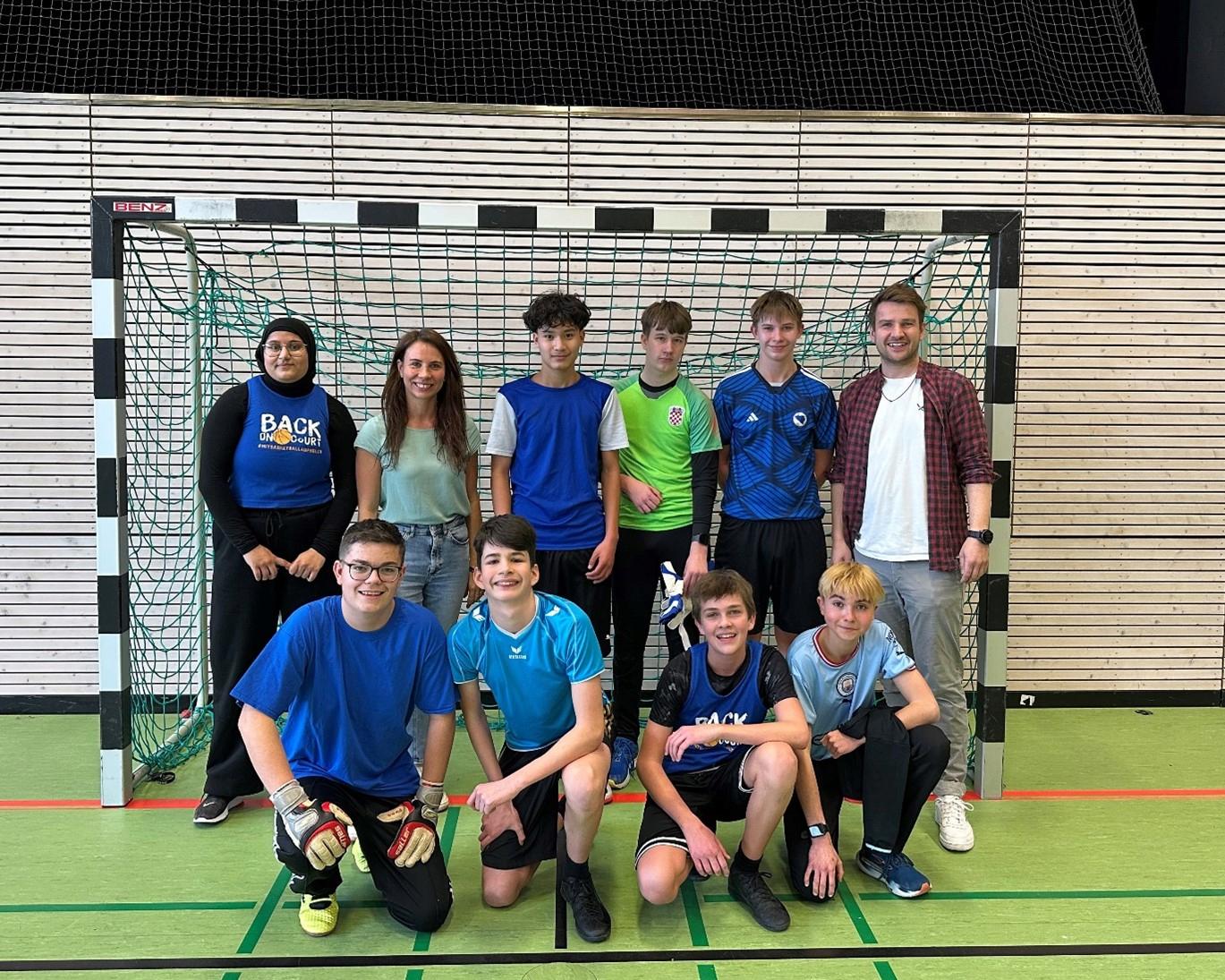 Aufgrund akuten Spielermangels wurden zwei Spielgemeinschaften gebildet. Die SG aus den Klassen 9M und 9P sicherten sich nach packenden Spielen am Ende den Sieg. Frau Bliemel und Herr Bauernschmid als Trainer-Tandem konnten ihre Schüler am Ende beglückwünschen. Ein modisches Highlight setzte die Klasse VK1, die im Vorlauf eigene Trikots gestalteten und mit ihrer Lehrerin Frau Ippendorf somit zumindest den schicksten Auftritt hatten.