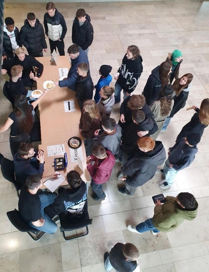 Am Tag des Waffelverkaufs zeigte sich, wie viel Organisation und Zusammenarbeit nötig sind, um ein solches Projekt erfolgreich durchzuführen. Die Schülerinnen und Schüler mussten Teig in der richtigen Menge herstellen, unter Zeitdruck arbeiten, mit dem großen Andrang umgehen und gleichzeitig freundlich bleiben. Auch Sauberkeit, Ordnung und eine genaue Abrechnung gehörten dazu.